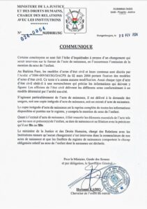 A cet effet, le communiqué précise qu’aucun changement n’est intervenu dans la nomenclature des extraits d’acte de naissance.